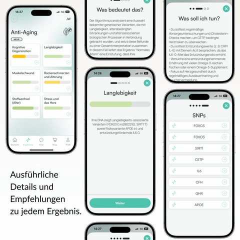 Ermittle dein biologisches Alter und erfahre wie deine individuellen Gene deine Gesundheit beeinflussen. Der AGE & DNA-Test kombiniert Epigenetik & Genetik für einen umfassenden Einblick in deine Longevity.